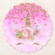 Dieser rosa und goldfarbene Einhornpapier-Untersetzer ist mit einem prächtigen goldfarbenen und rosa Einhorngesicht, goldenem Horn und passenden glitzernden Wimpern sowie hübsch rosa Blume auf ihrem Kopf ausgestattet. Im Hintergrund hinter ihr sind flauschige rosa Wolken und eine schwebende Wolke goldener Sterne über ihr im rosa Himmel. Dieser niedliche Untersetzer wird ein wenig von den Kindern in ihrem Einhorn-Party getroffen werden, von ihren Babyduschgästen oder von denen, die sie benutzen werden.