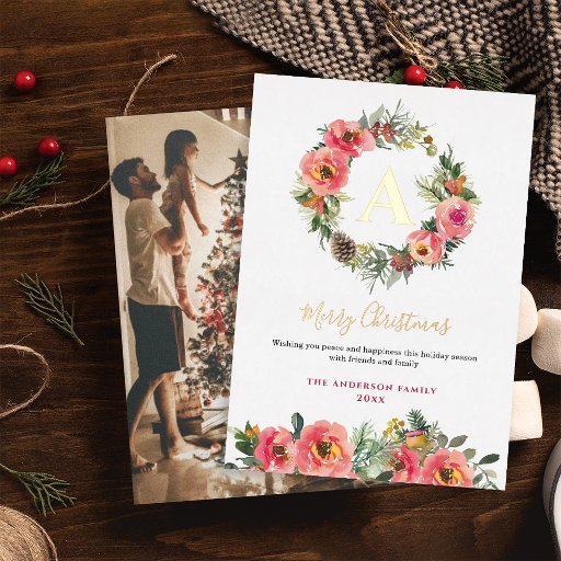Monogram Pink Botanical Wreath Holiday CollectionDesignt von Gloria Shen