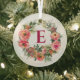 Rosa Wreath Rote Monogram Botanische Weihnachten Ornament Aus Glas