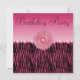 Rosa Zebra Stripes Blume u. perlt Einladung