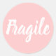 Pastellrosa, trendig, minimalistisch, modern und einfach verpackt Aufkleber, mit dem Text: fragil.