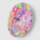 Rosa, Zitronengrün und blaue Bläschen Große Uhr