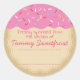 Rosa Zuckerguss mit Sprinklen "hausgemacht von oder "aus der Küche" Zuhause-Backen oder Bäckereiaufklebern personalisiert mit Ihrem Namen und anderen Texten, ideal für die Schenkung süßer Leckereien aus Ihrer Küche oder als Produktetiketten für Ihre Zuhause-Bäckerei.