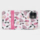 Ein iPhone 5 Fall, der Illustrationen der Geldbeutel, des Parfüms, des Lippenstifts, der rosa Diamanten und der Katzenaugen-Sonnenbrille mit einem rosa Farbschema kennzeichnet. Personifizieren Sie mit Ihrem Namen.