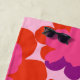 Strandhandtuch, Motiv Popflower, rosa, violett auf rosa Grund, mit Vornamen. Modifizierbarer Text.