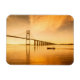 Rosario Victoria Brücke über Paraná Fluss in Argentinien. Foto aus der Küste von Rosario mit vorbeifahrendem Schiff. In goldenen Tönen bearbeitet. Horizontales Bild.