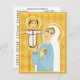 Maria und Jesus-moderne katholische Ikone Maria betet und zeigt uns ihren Sohn Jesus-Mysterien des Rosenkranzes und die dazugehörigen Schriften auf der hinteren Gebetskarte, die für Pastoralbesucher bestimmt ist, denen sie dienen,