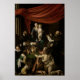 Entdecken Sie die grandiose und spirituelle Symbolik der Karawaggio-Rosaradonna (1607), einem monumentalen barocken Altarbild im Kunsthistorischen Museum in Wien. Dieses Gemälde zeigt die Jungfrau, die Maria begeistert hat, und gibt dem Heiligen Dominic, der von Dominikanern umgeben ist und treuen Kneeling in Hingabe. Die Komposition hebt die wichtigsten dominikanischen Heiligen hervor, darunter der Heilige Peter Martyr, der durch seine verschleierte Stirn identifizierbar ist, und der Heilige Thomas Aquinas. Die große rote Draperie und die Säule im Hintergrund erinnern an die Patronage der Familie Colonna, die möglicherweise mit dem Kommissar Luigi Carafa-Colonna verbunden ist. Das während der Zeit Caravaggios in Neapel gemalte Werk spiegelt die Werbeaktion des Rosary-Fest wider, das nach der Schlacht von Lepanto im Jahr 1571 gegründet wurde. Der Spender, der das Kneten an den verlassen darstellt, blickt direkt auf den Betrachter und sucht Schutz unter dem Umhang des Heiligen Dominicus. Caravaggios dramatische Chiaroscuro und naturalistische Figuren unterstreichen die heilige und menschliche Dimension der Szene. Dieses Museumsausdruck ist ideal für Kunstliebhaber und Sammler, die sich auf der Suche nach der typisch italienischen barocken religiösen Kunst und dem reichen historischen Kontext für ihre Zuhause oder ihr Büro befinden.