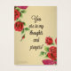 Schöne Vintage rote Rosen mit einem Bogen A Rosary ist um die Blume herum.