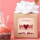 Happy Mother's Day Illustration mit einem luxuriösen Glamour Glitzer pastellfarben Hintergrund, Text Typografie "MUM" mit einem herzförmigen rote Rose Bouquet und Rose Blätter.