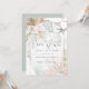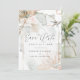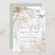 Save The Date | Rustikales BOHO Blumendesign mit Aquarellsplash - Korallenblütenpeony Blume und Elfenbein Anthurium mit blassgrünem und kräftigem Blätterdach mit modernem goldgekacheltem Bogenrahmen.