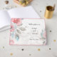 Erleben Sie Ihre elegante Wildblume und Rose-Hochzeit auf dem Aquarell modernen Blumenmuster aus dem Aquarell-Aquarium in Ihrem Gästebuch. Das Hochzeitsdesign besteht aus weißer Punta und rosafarbener Rose mit etwas Grün. Passen Sie es mit Ihren Namen, Datum, Anlass an und ändern Sie es nach Ihren Vorlieben. Entworfen von Hochzeit Hobinishop.