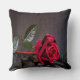 Eine wunderschöne rote Rose, die auf Felsen auf diesem wunderschönen, quadratischen Kissen liegt.