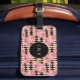 Hübsch in Rosa! Große rosa Rosen mit goldener Verzierung auf fett schwarzen harlequin Diamant Hintergrund. Anpassen mit Monogramm im mittleren schwarzen Kreis