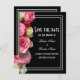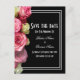 Ein schlichtes, hübsch rosa Rosa Blume Blumenstrauß auf schwarzem Hintergrund und ein weiß gesäumter Rahmen mit traditionellem Save the Date für sommerlich-weiße Hochzeitsfeiern, um Ihre Hochzeitssuite und andere Brautessentials zu ergänzen. Diese stilvolle elegante Hochzeit sparen das Datum, kann leicht personalisiert werden mit den Braut-und Bräutigamen auf den Text-Vorlagen, um Ihre eigene feminine mädchenhafte Band den Knoten Save the Date für Ihre besonderen Heirat-Anlässe, Veranstaltungen und Feiern. Besuchen Sie den PERSONALISIERT_ WEDDINGS STORE für die Abstimmung von Hochzeitsfeiern. MÜSSEN Sie den Text und den Schriftart anpassen.