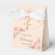 Eine Rose goldener Hintergrund. Die goldfarbenen Blumen in Rosa und Rose, das Pampas-Gras und das goldene Kreuz. Mit dem Text: Christening geschrieben mit einem modernen, dunklen Rose farbigen handgeschriebenen Stil Skript. Personalisieren und fügen Sie einen Namen und ein Datum hinzu.