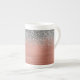 Rose Gold - Rosa und Silberne Imitate Foil metallische Sparkle Glitzer gebürstete Metal Monogramm Name Espresso Kaffee Cup oder Tasse. Das macht den perfekten 16 Geburtstag, Hochzeit, Brautparty, Jubiläum, Babydusche oder Junggeselinnen-Abschied Geschenk für jemanden, der Lieben glamourösen Luxus und schicke Stile.