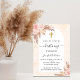 Ein Bogenrahmen und eine Rose mit goldenem Marmor als Hintergrund. Die Einrichtung ist mit Rose-Gold und rosa Blumen, Rose und Pampas-Gras dekoriert. Personalisieren und fügen Sie einen Namen und Details.