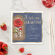 Diese individuelle Serviette aus Party besticht durch eine magische und bezaubernde Schönheit und das Märchenthema "Beast Fee". Der Hintergrund ist ein antikes, blaues Pergamentpapier-Design, umgeben von einem vergoldeten Rahmen. Auf dem links, mit einem goldenen Glitzer-Muster hervorgehobenen Bild wird eine rote Rose aus Buntglas abgebildet. Eine Geschichte, die so alt wie die Zeit ist, wird oben in einem mittelalterlichen Schriftart gedruckt.