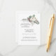 Die Kieferngrün mit weißen Rosen bilden eine elegante Blumenzettel. Weitere Akzentuierte mit subtilen Beeren und Kiefern. Kalligrafie ordnet das Design, um es einfach, aber effektiv voneinander zu trennen. Es ist feminin und stilvoll, mit einer bearbeiteten Palette von Weiß, tiefgrünem Kieferngrün und weichem Rot.
