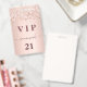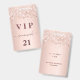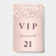 Ein modernes, stilvolles und glamouröses Abzeichen für eine 21. Geburtstagsfeier (oder jedes Alter). Ein modernes, stilvolles und glamouröses Abzeichen für eine 21. Geburtstagsfeier (oder jedes Alter). Eine Rose goldener Hintergrund mit Rose Gold Konfetti. Mit dem Text: VIP. Personalisieren und hinzufügen von Name, Alter, Adresse/Datum. Der Name ist mit einer modernen dunklen Rose goldfarbenen handgeschriebenen Stil-Skript mit Swashes geschrieben. Um die Swashes behalten, löschen Sie nur den Beispielnamen, verlass die Leerzeichen oder Emoji's vor und nach dem Namen.