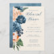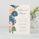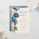Eine helle, kühne Blüte von Rose in staubblauen und pfirsichfarbenen Tönen ist der Mittelpunkt vieler dieser Hochzeitssuite, die auch elegante Schriftzeichen und moderne Designkonzepte bietet. Die passende Probe-Dinner-Einladung, die hier gezeigt wird, zeichnet sich durch eine wunderschöne Wasserfarbe aus, die auf der Rückseite in staubigen Blautönen abstrakt ist. Fügen Sie einfach die Namen der Braut und des Bräutigams und die Veranstaltungsdetails mithilfe der bereitgestellten Vorlage hinzu. Suchen Sie ID584, um die passenden Produkte und andere Farboptionen für dieses Design anzuzeigen.
