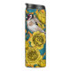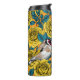 Handgezeichnetes Vektormuster mit Rose-Blume und Goldflossenvögeln. Alle Elemente für das Muster werden zuerst mit Tinte auf Papier gezeichnet, dann in Illustrator neu gezeichnet und farbig.