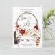 Ihr Boho-Fest kann rustikal und elegant zugleich sein. Dieses schöne Save the Date Design zeichnet sich durch das Beste beider Welten aus. Mit wunderschönen Aquarellfarben-Blume in Rosa, bordeauxroter Rose und leckerem Pfirsichfarben, die einen Boho-Träumer mit Federn und Blumen schmücken, wird dieses Design Ihre Gäste in Erwartung Ihres großen Tages begeistern. Entspricht anderen Designs in unserem Shop, um eine komplette Suite zu erstellen und ist vollständig anpassbar für jeden Anlass! Kann für Hochzeiten, Geburtstage, Brautparty- oder Babydusche, Abschluss oder andere große Veranstaltungen verwendet werden!