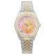 Die Rose in Rosa und Gold schmückt eine stilvolle Uhr. Diese in vielen Stilen erhältliche Blickfang-Uhr ist eine ideale Geschenkidee!