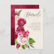 Eine helle, kühne Blüte mit Rose in Bordeaux- und Cremetönen bildet den Mittelpunkt für viele der Teile dieser Hochzeitssuite, die auch eleganten Schriftzeichen und modernes Design bietet. Die hier gezeigte, passende Detailkarte enthält alle oben genannten Elemente sowie eine wunderschöne Wasserfarbe, die auf der Rückseite in Bordeaux und Pflaume abstrakt ist. Fügen Sie mithilfe der bereitgestellten Vorlage einfach alle relevanten Informationen zu Ihrem Ereignis hinzu. Suchen Sie ID584, um die passenden Produkte mit diesem Design zu sehen.