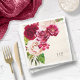 Eine helle, kühne Blüte mit Rose in Bordeaux- und Cremetönen bildet den Mittelpunkt für viele der Teile dieser Hochzeitssuite, die auch eleganten Schriftzeichen und modernes Design bietet. Die hier gezeigte Hochzeitspapierserviette hat eine Ecke mit Rose. Geben Sie einfach Ihren Hochzeitstermin und die Initialen von Braut und Bräutigam mithilfe der beiliegenden Vorlage ein. Suchen Sie ID584 um alle passenden Stücke in diesem wunderschönen Hochzeitsfest-Set zu sehen.