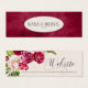 Eine helle, kühne Blüte mit Rose in Bordeaux- und Cremetönen bildet den Mittelpunkt für viele der Teile dieser Hochzeitssuite, die auch eleganten Schriftzeichen und modernes Design bietet. Die Hochzeitswebkarte, die hier gezeigt wird, hat einen oberen Rand von Rose und eine wunderschöne Aquarellfarbe, die auf der Rückseite in Bordeaux und Pflaume abstrakt ist. Geben Sie einfach Ihre Namen, Ihr Hochzeitstermin und Ihre Website-Details mit der bereitgestellten Vorlage ein. Suchen Sie ID584 um alle passenden Stücke in diesem wunderschönen Hochzeitsfest-Set zu sehen.
