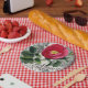 Hübsche Rose! Dieser Vintage inspirierte Blumendamast zeigt eine antike rote Rose mit verschiedenen Damast-Tapeten-Motiven im Hintergrund. Atemberaubend für eine moderne Touch der Blumendekoration.