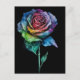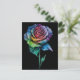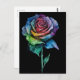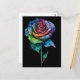 Eine Postkarte mit einer atemberaubenden gefärbte Krawatte Rose. Diese farbenfrohe Postkarte bietet eine Single-Rose mit bunten Blütenblättern in einem gefärbte Krawatte-Malstil und schafft so ein einzigartiges Aussehen, das auf dem schwarzen Hintergrund auffällt. Perfekte Postkarte, um jedem zu schicken, der farbenfrohe und einzigartige Postkarten Lieben hat.