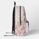 Dieses Rucksack-Design zeichnet sich durch ein rosa Rose-Muster mit einem rosa Bug-Akzent aus. Sie können mit Ihrem Monogramm personalisieren.