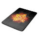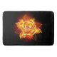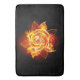 Blühende Rose aus Feuer und Flamme auf schwarzem Hintergrund.