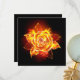 Blühende Rose aus Feuer und Flamme auf schwarzem Hintergrund.