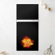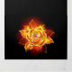 Blühende Rose aus Feuer und Flamme auf schwarzem Hintergrund.