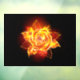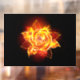 Blühende Rose aus Feuer und Flamme auf schwarzem Hintergrund.