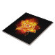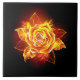Blühende Rose aus Feuer und Flamme auf schwarzem Hintergrund.