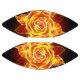 Blühende Rose aus Feuer und Flamme auf schwarzem Hintergrund.