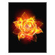 Blühende Rose aus Feuer und Flamme auf schwarzem Hintergrund.