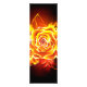 Blühende Rose aus Feuer und Flamme auf schwarzem Hintergrund.