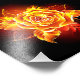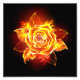Blühende Rose aus Feuer und Flamme auf schwarzem Hintergrund.