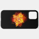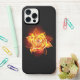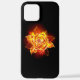 Blühende Rose aus Feuer und Flamme auf schwarzem Hintergrund.