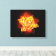 Blühende Rose aus Feuer und Flamme auf schwarzem Hintergrund.