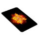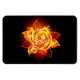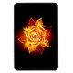 Blühende Rose aus Feuer und Flamme auf schwarzem Hintergrund.