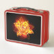 Blühende Rose aus Feuer und Flamme auf schwarzem Hintergrund.
