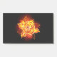 Blühende Rose aus Feuer und Flamme auf schwarzem Hintergrund.