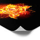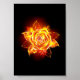 Blühende Rose aus Feuer und Flamme auf schwarzem Hintergrund.